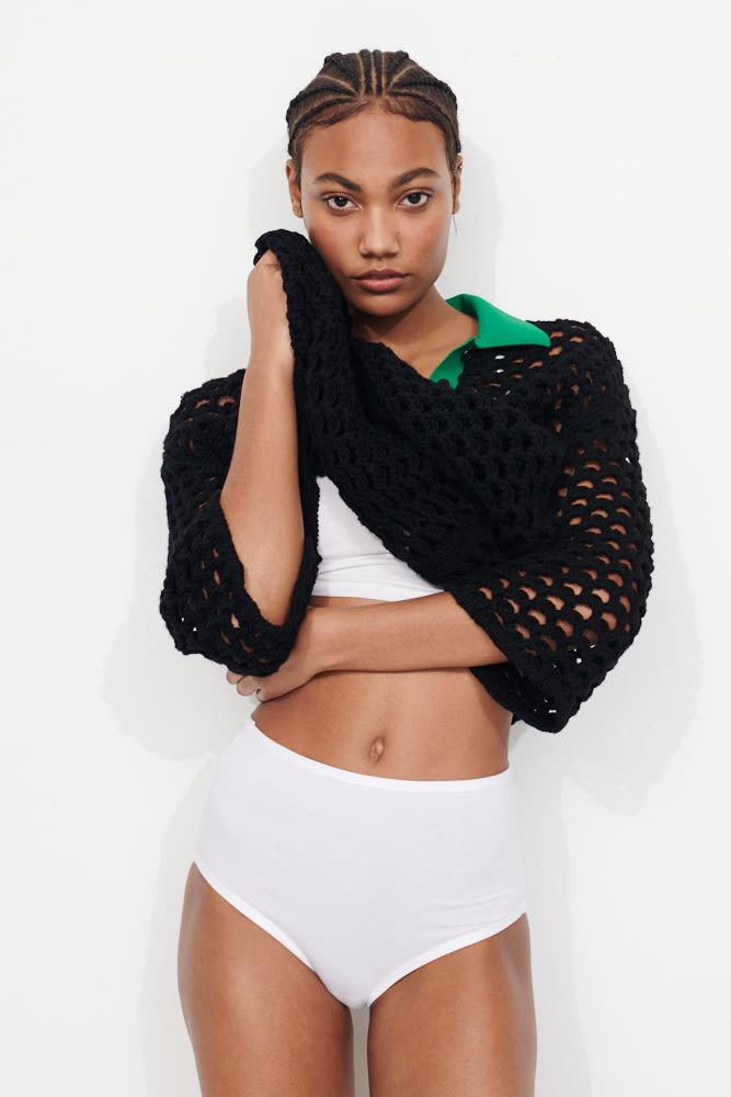 Everlane, The High-Rise Bikini, $12. Top by Commission NYC, bra stylist's own.