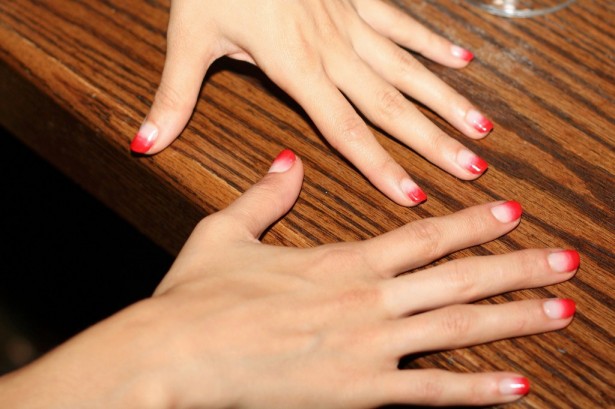 'I'm wearing the cheapest liquid eyeliner from the drugstore, MAC mascara, and MAC matte lipstick in Ruby Woo. It's the perfect 'Robert Palmer red.' Totally Robert Palmer girl, in the music videos. It's perfect. And then my manicure: I'm obsessed with two manicures, which I alternate between. First is the half moon, it's a 1930's thing; really old fashioned. And then this one that I have right now is the gradation manicure, and when you have red at the tips it makes you look like you killed a grizzly bear with your own two hands. It's amazing. So if you go in and tell your manicurist you want to look like you killed a bear, hopefully she'll give you this.”