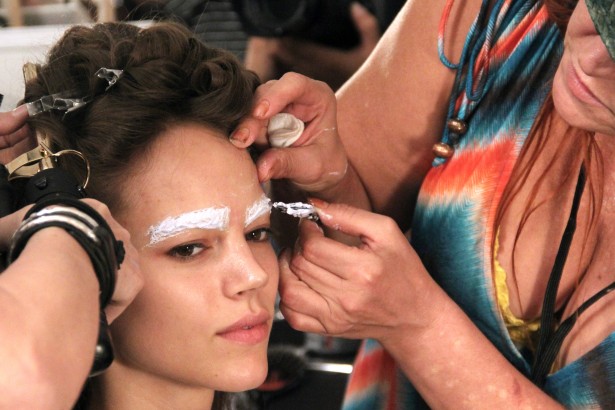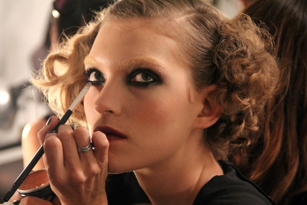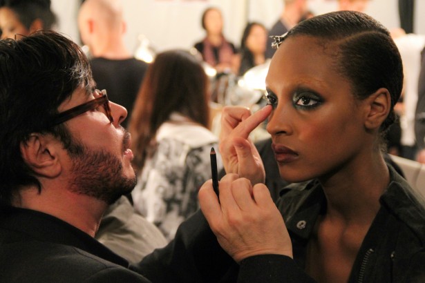 Francois Nars (NARS): We’re doing 1970’s glam updated to a more modern version, but still taking all the codes from the 70’s, like no eyebrows, greasy, very lacquered eyes, with a twist of making it look a little more ‘today’/2010 by doing transparency in the skin—a little glow—and very matte lips.