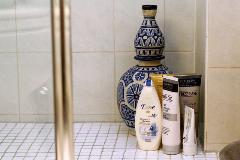 My hair products all come from fashion show gift bags or from the VOGUE beauty sales, when they’re clearing out the closet. I can’t remember the last time I bought something—it’s whatever’s in the bag. I have Redken, Sunsilk, Frizz-Ease, Klorane, John Frieda, you name it. The only thing I’ll buy is this Dove shampoo, from El Salvador…I swear that the formula is different. I like the laundry detergent better there, too! My hair’s naturally wavy—and in the rain, frizzy—and I like it clean and groomed, so I blow-dry it straight. I like the Phyto styling products for keeping it smooth. And for a blow-out, I go right down the street from my apartment to Jean-Claude Biguine on Lexington and 68th. They know me there, so I pop in and $40 and twenty minutes later I’m on my way to work. It’s easy…dangerously easy!”