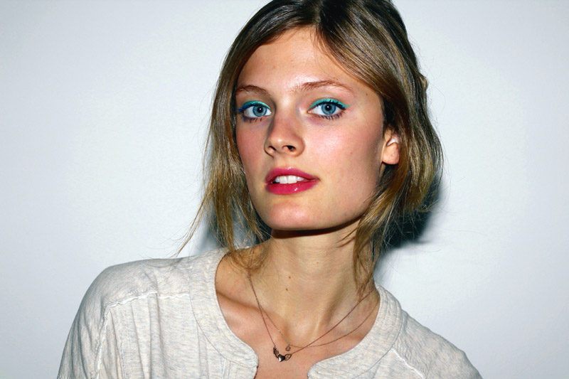 Constance Jablonski (Marilyn) wearing limited edition ShadowStick Duo in Pink/Teal, Pure Color Lip Gelée in Electric Pink, and Sumptuous Extreme Lash Multiplying Volume Mascara in Extreme Indigo, from Estée Lauder's spring collection. Photos and makeup by ITG.