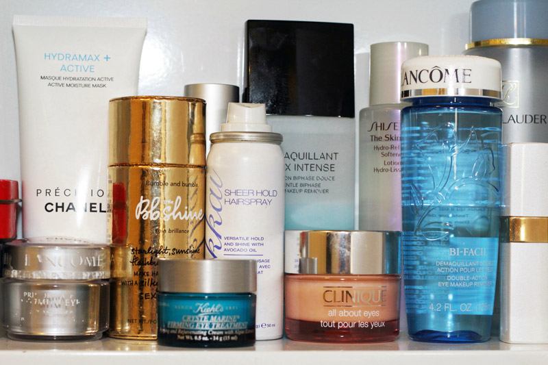 In terms of makeup, I’ll do a few dabs of YSL’s Anti-Cernes Multi-Action concealer to start with, and then Benefit’s Ooh La Lift, which is an under-eye concealer and the perfect complexion-perfector. I love Anastasia’s Go Brow Universal Brow Pencil, actually on my lids, to create kind of a neutral base. Bobbi Brown makes the greatest eye shadow and blush—she says she packs all of her powder colors really tightly, so they don’t cake on. Sometimes blushes are too loosely packed and then it, like, explodes color on your face. I love Covergirl Eyelights mascara and eyeliner, which is designed to accentuate your eye color. I bought the deepest navy/black, for blue eyes, and it just makes a world of difference. Sometimes straight black against fair skin and blue eyes can look really jarring, but this shade is perfect for everyday. And Hillary Kerr of Who What Wear is my patron saint of mascara—she knows every single mascara—she recommended Bottom Lash mascara by Clinique, which I love for a night out. Another tip came from a makeup artist who I sometimes work with—he curls the lashes so close to base it’s almost painful, and then applies CoverGirl LashBlast waterproof mascara at the base and the regular formula at the ends. It really ‘sets’ the curl without looking too spikey at the tips. It looks amazing—like I have fake lashes—and lasts throughout the day. If you’re doing a full face, L’Oreal Studio Secrets Magic Perfecting Base is amazing—it gives your skin the most amazing silky, luminous quality. When I was getting married, I wasn’t convinced about the makeup I had booked, and one of our beauty gurus, Beth Shapouri, was like, ‘Why don’t you just do it yourself? All you need to do is get this L’Oreal base, get Nars Orgasm, teach yourself how to apply a few fake lashes, and that’s all you need.’ So I did it myself and I was totally happy.