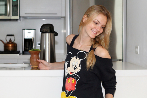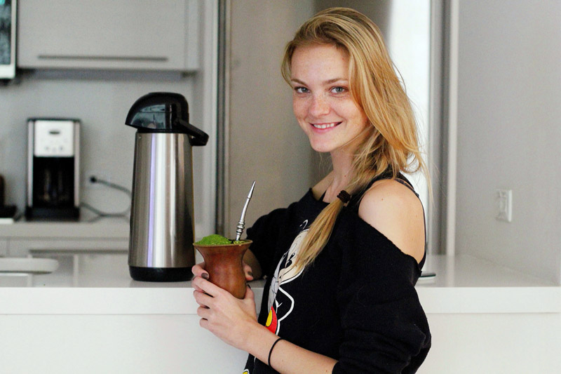 “I’m drinking Chimarrão. It’s a tea—it’s really popular in the south of Brazil, where I’m from, and in Argentina. My family gets together every afternoon for Chimarrão, not tea or coffee. This is the traditional cup, the straw, the powder—I bring bags and bags of it back to the states with me and freeze it! It tastes less like tea and more like an herb. So I’ll drink it all day long, you just keep putting more water in it. My friends here think it’s weird but I don’t care. I miss my family so much and this brings us together—sometimes I talk to my mom on Skype and I say, ‘Oh, I’m drinking a maté,’ and she’s like, ‘Me too!’ It makes me feel closer to them.