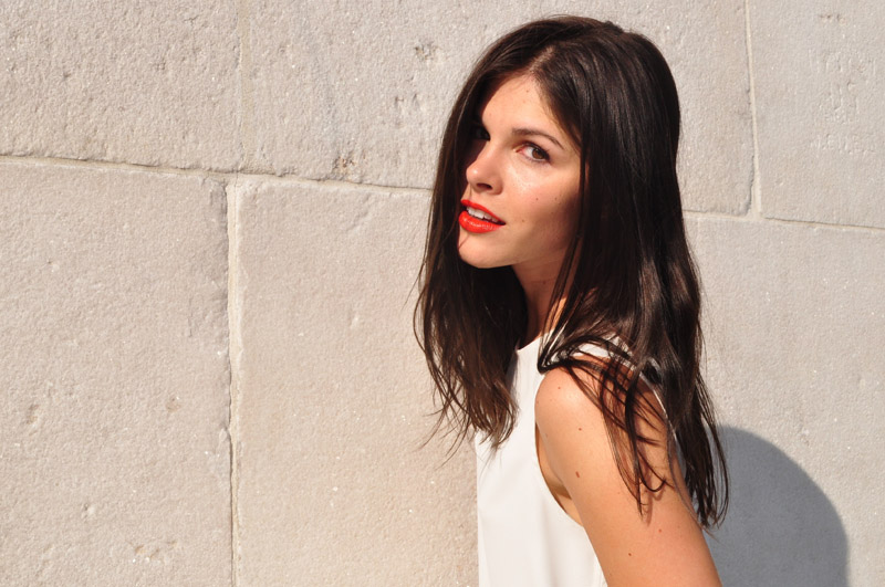 Lips—the fun part! Come on, how fun is a bright color? I’ve been all about orange this summer. My ultimate favorite recent discovery is Dolce & Gabbana’s Venere. It’s a hot orange-y red that’s super pigmented, and I apply it almost like greasepaint…behold, picture at top. Thicker lipsticks also last longer on the mouth and this one is no exception. If I want a (much) more subtle lip, I reach for Chanel’s Rouge Coco Shine in Fétiche. I recently dyed my hair a bit darker, and this sheer neutral shade perks up my complexion. I’ve tried several of the Rouge Coco Shines and the sheer formula is just what I need on a ninety-degree day…such as this!