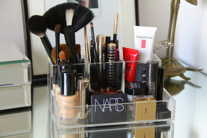 But what you really won’t believe is that all my makeup—and I’m talking about the makeup I really use, not the countless things I try—fits into this clear acrylic unit from The Container Store. An item gets serious consideration before earning real estate in this box. And then, I have my little perfectly edited, movable station. Since my bathroom is tiny, and the medicine cabinet has been overrun with skin care products, the makeup cube comes onto the countertop only when I need it. Which is kind of all the time.