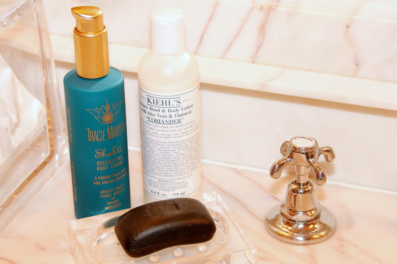 In terms of skin care, I keep everything very simple. I always wash my face and put on moisturizer when I go to bed. I’ve used Erno Laszlo Sea Mud Soap for a long time—it’s very cleansing but doesn’t dry out your skin. My friend Marina Rust gave me Tata Harper moisturizer for my birthday last year. I really love the natural scent. Weleda Skin Food is my go-to moisturizer, which you can buy for $10 at Whole Foods. It’s rich and hydrating but not too heavy—great for your face but you can also use it on your arms and legs. I love the smell of Mustela lotion as well. I used it on my boys when they were little and I kept using it—it’s meant for babies so maybe it’s time to move on. [Laughs]