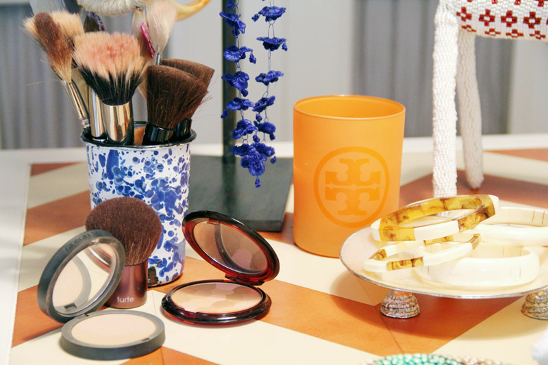I’ve always used tinted moisturizer on my face. I like Pat Wexler’s—her products are great. They’re sold at Bath & Body Works and are amazing for the price. She has an under-eye moisturizer that works for dark circles too. I usually wear MAC lip gloss, Shu Uemura cover-up, and Armani Eyes to Kill or Dior mascara, but I don’t have a set regime—I mix it up and use what’s on hand. I like natural nails—I use Deborah Lippmann’s Tiny Dancer and leave the crazy colors to the 20-year-olds. [Laughs] I wear the same fragrance day or evening. I love Vetiver by Guerlain—my father and brothers wore it, but I think it crosses over well. I’m not a big flowery perfume person. I used to wear Chanel No. 5 and Cristalle growing up and sometimes wore Hermès too. And I like Balenciaga—it’s really about the bottle! [Laughs] When I travel, I pack a few extra things in my carry-on— Kiehl’s Coriander Body Lotion and By Terry Baume de Rose lip balm. I try to pack Airborne, too, because planes can be hazardous to many things, including your health—especially if someone has a cold.