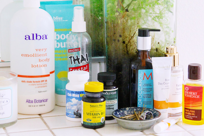 I’m definitely bohemian—I’m from California and was raised eating organic foods, never too much junk food or sugar. I was never really allowed to have that and now I’m just kind of turned off by it. I’m usually looking for organic or natural, from-the-earth beauty products. I use Dr. Hauschka after I wash my face—the Rose Day Cream and the eye cream. Dr. Hauschka is one of the best really natural lines out there. I’m a big fan. Also I love Dermalogica Special Cleansing Gel and Microfoliant. And I supersize the Alba Botanicals body lotion; I wear it every day because it has built in sunscreen, it’s very moisturizing and it’s all natural—no parabens or anything—and it sinks right into your skin. But when I’m going on a date, I’ll use the Bliss Lemon and Sage Body Butter because it smells nicer. Guys always compliment me on it! Once it mixes with my skin it doesn’t smell like lemon, it just smells fresh…like I’m making an effort. [Laughs] Oh and my deodorant is like liquid salt, ‘Thai Crystal’. It doesn’t keep you from sweating but it definitely stops you from smelling too much.