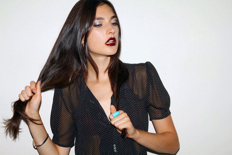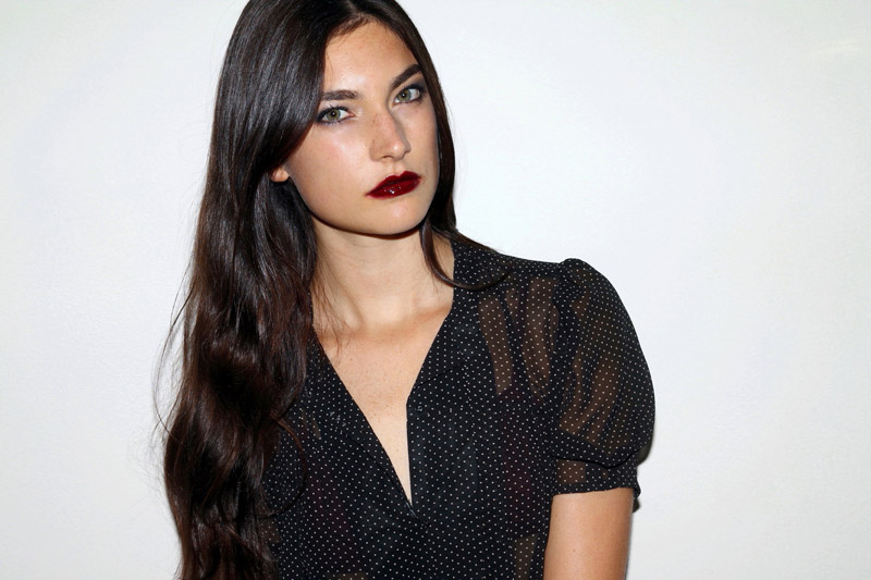 Jacquelyn Jablonski (Supreme) wearing Gloss Interdit in Lune Carmin (No.31) layered over the matching lipstick, for an ultra-rich effect. Les Ombres de Lune Shadow & Light Eyes in Lune Mystérieuse (No.1) completes the look. All from Givenchy's new Fall collection. Photos and makeup by ITG.