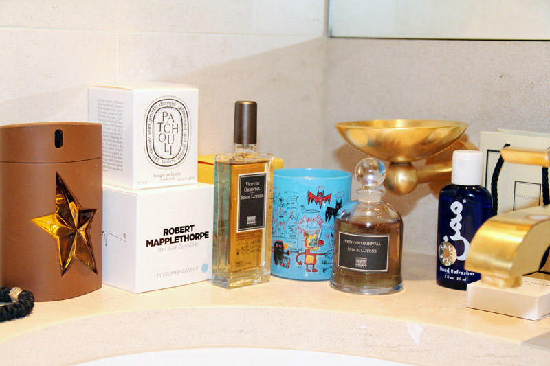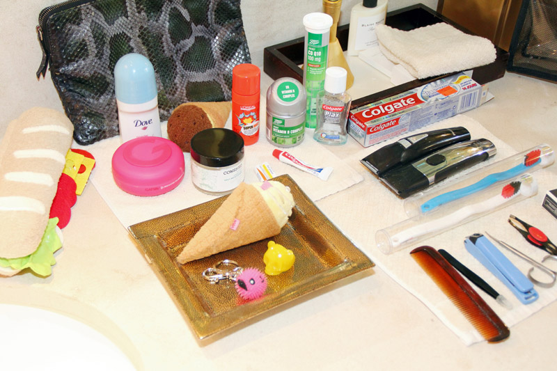 'I’m such a nomad, and I always stay in hotel rooms…I kind of live in these very beautiful, but very generic hotels. Sometimes I’m in one place for a month, so I need to have my stuff there. I like to have toys around all the time, and different smells. I’m half Japanese so I like kawaiis and for me, candles are like toys. I bring mini ones everywhere because I like any kind of smell. I just bought these Diptyque ones at Colette the other day. And I’ve got my little zombie panda ring I designed for my pop-up store, that I wear all the time. I’ve got my Lanvin pouch I carry everything in. I always change my candles, and my perfume. I wear [A *Men](http://us.boutique.thierrymugler.com/webapp/wcs/stores/servlet/perfumes_fragrance-for-men-amen_-1_10151_11201_44526 111)—Angel—by Thierry Mugler. I started wearing it when I started working for Mugler, and it really reminds me of gay clubs…when I was like, seventeen, eighteen, in Italy—everyone wore this. And I was wearing it too, I’m sure…either this or Jean Paul Gaultier. I have two or three that I always carry; I also really like Serge Lutens Vetiver Oriental. There’s one size for my handbag and one for when I’m travelling. I really like strong smells, so it’s always ginger mixed with, like, bubble gum, or crazy stuff. And I only wear women’s deodorant. Have you smelled guys deodorant?! It’s terrible. I love this one— Dove Powder Fresh. I’ve used it for like, ten years.