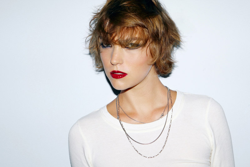 “The thing that kind of started me was that bob—and I felt like it was time for a change. I needed a haircut because it was growing out, so I was kind of hoping someone would cut it eventually. Then a couple of weeks ago, I was on set for Vogue Paris with Christiaan and he drew a picture of how it could look, and when he starts cutting, it’s kind of like Edward Scissorhands: it’s a whirl of hands and fingers and scissors and blades, and hair goes everywhere—it’s very exciting. And it just kept getting sorter and shorter. It looks boyish because it’s short, but I feel girly…it’s a little pixie-ish. But it can kind of look like anything. People have been putting wax or putty in it, and doing cool architectural things—for example, a few days ago I did a 1950’s-inspired story, and the hair was sort of a mix of Sandy, Rizzo, and Danny from Grease. It ended up looking really modern. But short hair grows really fast, it’s not a myth—I already feel like I need another haircut.”