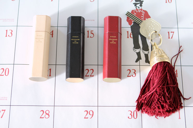 But I’m in a good place right now. I have a new fragrance that just came out, Seven Veils. I really like the idea of doing perfume as a veil, in terms of security, and that feeling of covering yourself in something. There’s this biblical reference I remembered from Catholic school, ‘Salam’s dance of seven veils,’ that I thought was a very extreme tale of seduction. She dances, and she takes off these seven veils, and she is granted this mans head on a plate. So it’s like sex, and seduction and death. It’s a spicy Vanilla; it even has carrot in the top note. And these travel size perfumes will be out early December—it will be every perfume I have done, in travel size. I try not to discriminate. Also these purse cases will be at Barneys before Christmas; they were in development for a long time. I got the leather from different tanneries: one from the leather fair in Bologna; the tan from the place that supplies Louis Vuitton handles—it gets quite dark over time. I had this idea of it being round—because that’s been our geometric shape that we work around—but having one side flat so it won’t slide off the table. And we’ll have an initialing service at the store in Sweden.