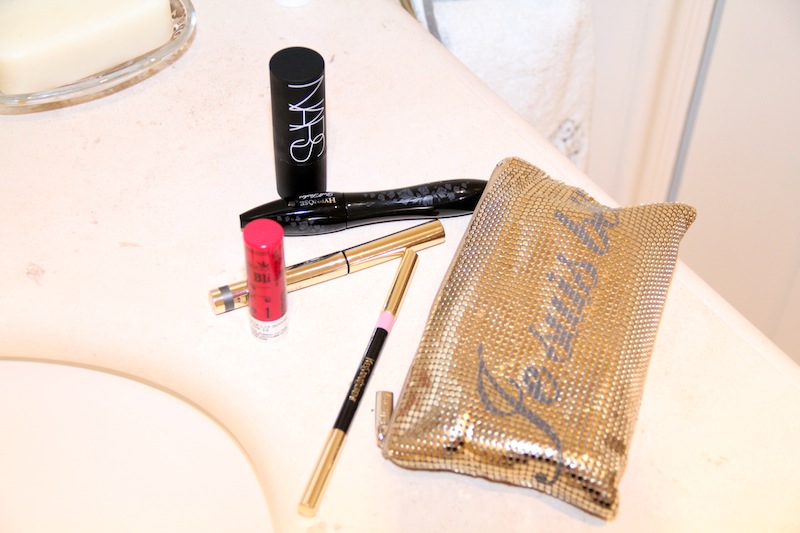 This is my ultimate, amazing stuff. When I’m putting eyelash, because at night I’m putting eyelash—mascara—this is the only thing that takes it off: La Roche-Posay Respectissime. You don’t have to do three times—once, it’s over. NARS The Multiple, that’s my love. South Beach for when I’m tan, and the pink one when I’m like, super white. What I love to use, is Yves Saint Laurent Touche Éclat. To me, this is the one I’m using all the time—if I have to choose one thing, it will be this one. Then at night, if I go out, I’m using By Terry Ombré Blackstar in Black Pearl on my eyes; I put it on with my finger. It’s smoky, but it’s light…if it’s not very smoky, I just use more. It’s just sparkling gray. And my mascara is Hypnôse Doll Lashes by Lancôme. Clear Eyes is a savior to me, because I’m allergic to everything. Also I have another thing I love—this is a new trick: I put this light pink underneath, that makes my eyes more wide. It’s Yves Saint Laurent in #12. If you put the white one, it looks fake. If you put this one, it looks completely natural. My goddaughter showed me this trick, she’s very into makeup.