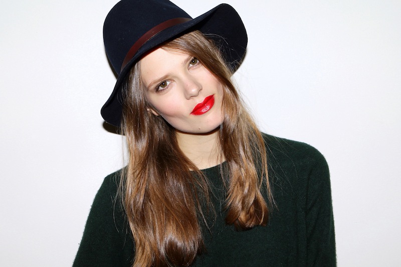 Miss Caroline Brasch Nielsen (Marilyn) demonstrating how to wear a red lip in the middle of winter: