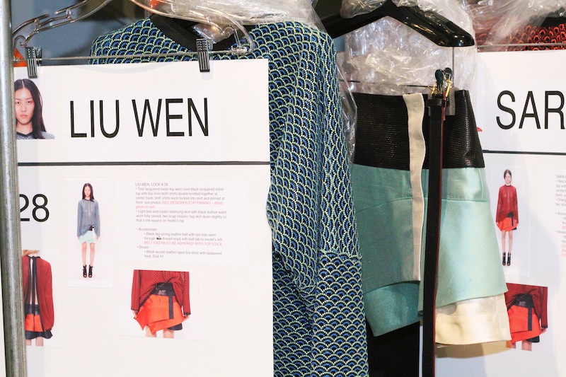 Diane Kendal (MAC): We’re doing the typical Proenza girl—very cool—so we’re just moisturizing the face, evening out the skin as needed, adding brown greasepaint (Richly Honed Pro Sculpting Cream, available Fall 2012) around the eye, brushing the eyebrows and that’s it. Nothing else. The hair’s really natural, just being washed and left, so Jack and Lazaro really wanted the girls’ individuality to come through. There’s this one girl, Melissa *, an Argentinian girl, who's got a really heavy fringe and sort of feathered hair, she was kind of the muse for how they wanted the girls to look. She came in for the fitting and they said, ‘We just want the girls to look like that.’