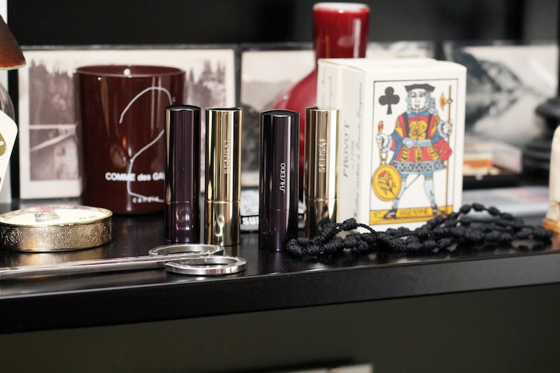 For makeup, it’s just the MAC Face and Body—that’s what I put as a primer—in a shade lighter than my skin, and then I put on the Studio Fix NC15 foundation. My eyeliner is MAC Cruella, which is purple. I used to wear it when my hair was red, and I think it’s quite nice. At first I thought it would be quite off-putting, but it works. I like the MAC Brow Set in clear for my eyelashes because it keeps them very static. I don’t wear mascara; I find it hard. I like the eyelashes to be very defined so you can see them one by one, and I think it’s hard to find a mascara that gives them that effect. I like a matte face, matte lipstick; I like it so the face looks very one-dimensional, which is the opposite of what everyone wants. I like it looking very rigid. My lipstick is Shiseido Perfect Rouge in RD514 and RD305, or Kanebo Sensai 01 and 09. I like them quite reddish brown. I used to like the Lancôme liquid eyeliner because I thought the brush was really good and very thick. I’d do a cat eye with a very thick liquid liner. But that’s it, pretty much.
