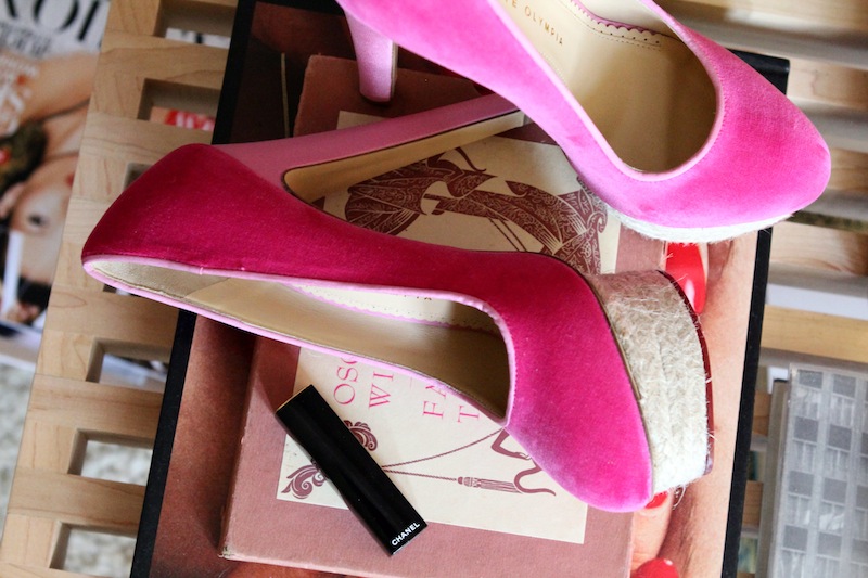 I always wear red lipstick— MAC Ruby Woo is my favorite. I also use a tiny bit of their blush: Pink Swoon. I don’t like to create the definition that you see makeup artists do with blush, or, like, in fashion editorials; I like to use it to have that flush—it adds a little bit of color to your face. You know, back in the day, girls used to just pinch their cheeks to get that little bit of color—so it’s like that, but with a brush. And for eyes, I use Volume Effet Faux Cils mascara from YSL, just because that’s what I decided to buy in the store. Packaging is really important to me—I’m very shallow. And obviously I wear Charlotte Ronson for Sephora in Annabelle. [Charlotte and I] talked about it. She said, ‘What do you think you’d be if you were a makeup?’ And I said, ‘Well, I’d definitely be a lipstick ‘cause that’s usually the only thing I wear.’ Samantha [Ronson] is definitely more of a mascara or eyeliner kind of person. I also just got a package of Chanel lipsticks and it had this pink color, and I actually dig it. It’s called Rouge Allure Velvet, 37 L'Exubérante. It matches my new Charlotte Olympia shoes.