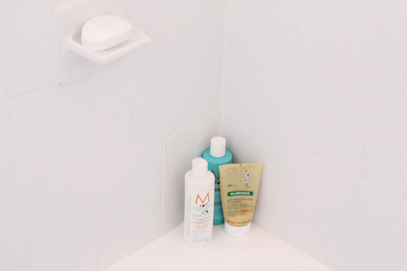In college, I wanted to be beach-y, and never brushed my hair. My boyfriend was like, ‘You have to brush your hair!’ So I started brushing it and cutting it regularly. I like Mason Pearson brushes. I use Moroccan Oil, and either chamomile Klorane conditioner, or the Moroccan Oil shampoo and conditioner, but this is probably my favorite: Terax, the conditioner. And Klorane dry shampoo is extremely important to me. [Laughs] Because even if your hair is clean, it gives it a really nice texture.