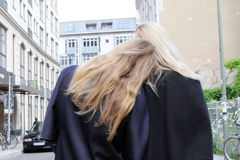 Jen Gilpin & Merle Winter photographed by Emily Weiss on June 5th 2012 outside the Don’t Shoot The Messenger boutique in Mitte, Berlin. Jen is wearing Don’t Shoot The Messenger . Merle is wearing a black Don’t Shoot The Messenger leather jacket (worn underneath) and a navy COS coat.
