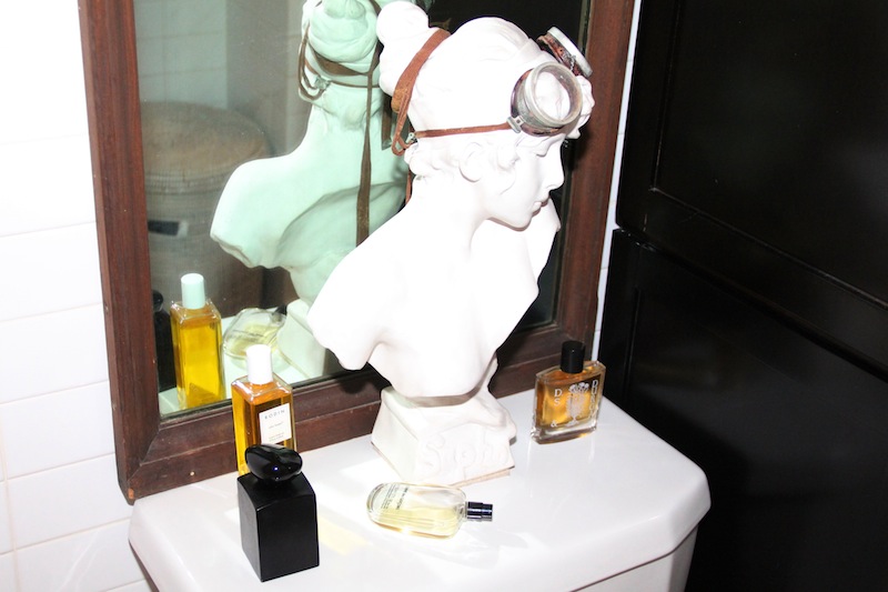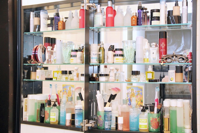 I do wear mascara, Maybelline Great Lash. It’s so good; the Very Black is very black—I just like it. And my favorite blush is Bobbi Brown Pale Pink. It looks like it should be too bright, but it sort of makes you look like you just had sex, so I love it. It’s just the right amount of just had sex. I love Giorgio Armani Face Fabric; it’s nice and light. I mean, if I’m actually going to be photographed, I’ll go all the way to foundation, but for real life I’ll just put on Face Fabric. And sometimes I’ll wear a hard red lip—crazy red Dior 999. Good, right? It’s so blue for a red; it’s so matte. If you’ve got nothing on your face but curled lashes and a red lip, it can’t be all bad. And then I love this Rodin Olio Lusso—it smells so good. I just bought her hair oil, and her body one. My hair is really too light and fine to put hair oil in the day, but it’s nice at night. I’ll come home and wash it and not dry it to try to give it a break, and then rub a bunch of hail oil into it, wrap a towel around my head, and go to bed. I keep Perricone’s lip balm next to my bed—it’s really good, super hydrating. And there’s a scented clay disk over the light bulb in my bedside lamp—the heat of your light bulb burns the oil so your bedroom smells good when your lamp’s on at night. Dude, when you turn on your lamp in your bedroom and you sit there and read for 10 minutes, all of a sudden you’re like, sniffs! And, say you’re having sex? It’s really great.”