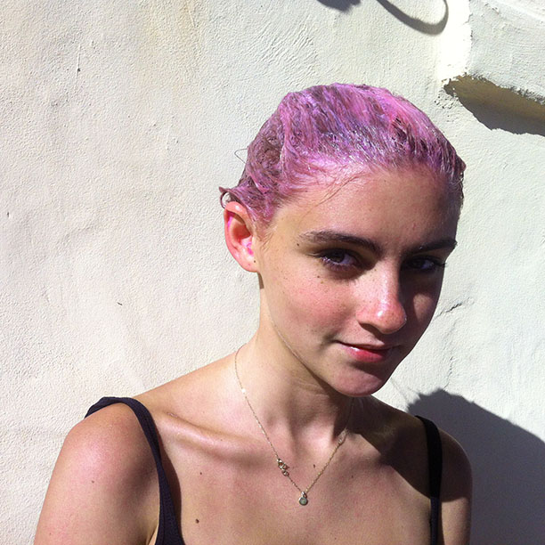 When makeup artist extraordinaire Jeanine Lobell and her fifteen-year-old daughter Esme emailed us to say Esme had spontaneously decided to dye her luscious blond locks Pepto pink, we asked for photo proof (obviously) and a rundown of the events surrounding the dye job: