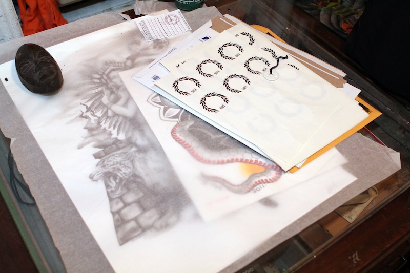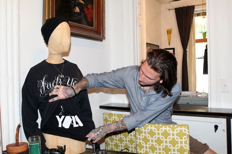 I really like the mix of people who I meet, ‘cause they change every 20 minutes—all the different personalities. I’d say I’m reserved, but when I’m working I have 20 minutes to unlock a person, figure out what makes them tick, what they like, what they don’t like. I change for every person; it’s part of why I’m successful. I can adopt so many different personalities. If somebody wants to be shy, I can be shy back to them. If somebody wants to be aggressive, I can be aggressive back to them. If someone wants to talk shit to me, I can talk shit back to them. Because it’s such an intimate experience, I think people are in a vulnerable space so they tend to open up. If I pass them on the street, they’re not going to say the same shit that they would in there. So it’s cool, I feel like I bond with them very quickly; it’s just a nice moment shared between two people. And at the store, a lot of us have worked together for a long time, so there’s a lot of jokes, and a lot of teasing. Like for example, if I have a really pretty girl in my room, one of the guys, without fail, will stick his head in and say, ‘Oh Colby, your girlfriend called. She wants you to pick up some milk on the way home.’ [Laughs] It’s cool though, there’s a lot of talent there. Just being surrounded by artists, in general...the energy; there’s so much creativity.
