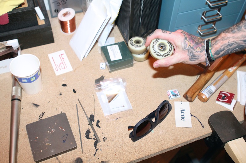 I like to pick up fashion magazines, like Love or V, and I’ll go through them and draw piercings on the models. That way I can experiment with the way things fall or lay on paper before it’s a $500 piece of jewelry. It keeps me inspired, and it keeps me fresh. The first revelation I had about making my own jewelry—and I think a lot of it also just comes from understanding how piercings work and how things will lay and how things should fall—was when I was troubleshooting a problem in my head where I had a good friend of mine who was an actress, and she wanted the look of a thin, fitted ring in her septum. But the problem with the septum ring she had was that they’re not easy to remove, and she would go to work and need to shoot, and she'd try to take it out herself, and then end up mangling it, and come back and buy a new one. And that was the cycle that just kept repeating and repeating. So literally after a couple months—I swear to God I was asleep and I woke up—I just realized that I could achieve what I wanted with a chain. I could make it user-friendly, where it just loops onto a retainer so it could easily be taken on and off. Plus, with a chain, it still gives the look of being delicate, and it’s got a little bit of movement to it. It’s so simple—a chain was everything I needed right there. I basically wanted to understand how jewelry worked, so I started taking some jewelry classes—basic goldsmithing and silversmithing. I wanted to know what was and wasn't possible, so if I was dreaming up something it wouldn’t just be this weird impossible idea. Then, with the septum stuff, I ended up having a lot of excess chain on hand, and I just started dressing things up for people here and there. I have a little tiny studio at my house, with a little jewelry bench. Everything I do I don’t need that much equipment for.