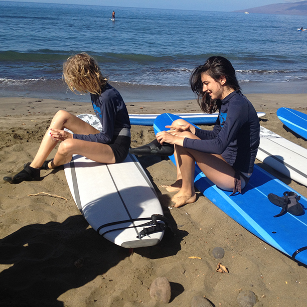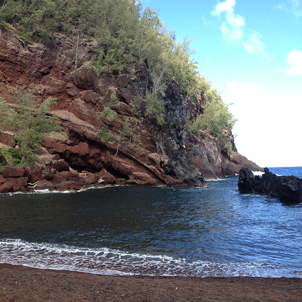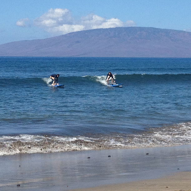 “Here’s Jacquelyn and I having ice-cold coconuts from the side of the road by Big Beach [1] ; Hanne and Jacquelyn before our surf lesson [2] , and then Jablonski and I up! [3] ; Me hiking in the bamboo forest on the way to Hana [4] ; and then our favourite beach, the Red Beach in Hana [5] ; some aloe picked from our backyard (no burns this trip but helped hydrate our skin) [6] ; and our last sunset seen from our porch [7]. Beautiful Hawaii!”