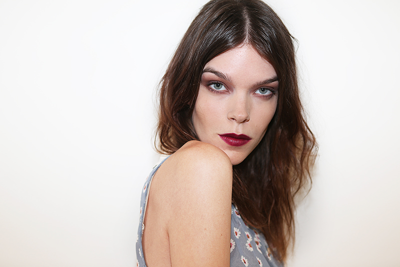 I’m in love with an eye shadow. It all started in March: backstage at Rochas in Paris, models milled around with blackberry lips (not so surprising; it had already become, by that point, the hue to beat for fall), and eyes that were hugged—top and bottom—by a wash of a hard-to-place, hazy color. Lucia Pieroni held up a square Clé de Peau compact with a violet-swirled lid and told me, “we’re doing a sort of ‘blown out’ smoky eye, so there are no edges to it—it’s very soft-focus. No liner, no mascara…it’s kind of like shading the eye. To me, that has a real beauty because you get to see people’s lids, which you don’t usually see because when you have loads of mascara or liner on, the lid disappears. Here, you get this really beautiful wide, oval shape.”