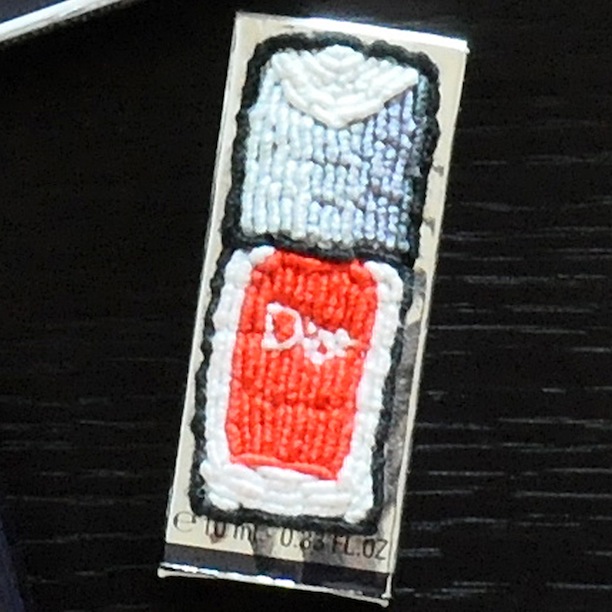 L'Officiel's Daphné Hezard tipped us off to a French law-student-turned-artist named Kelly Favre, who embellishes cosmetics packaging (Chanel, Dior, Guerlain...) with her sometimes-cheeky—and sexual, as in [4], which depicts a sperm fertilizing an egg—hand-embroideries. Intrigued by the forwarded photo of a half-finished Chanel bottle, we asked Favre to share some more examples of her work, and she happily obliged. Favre writes: