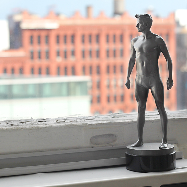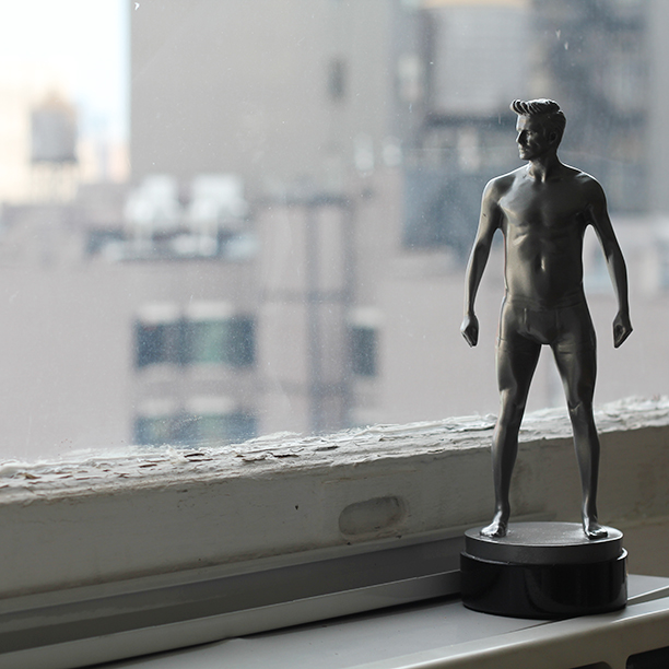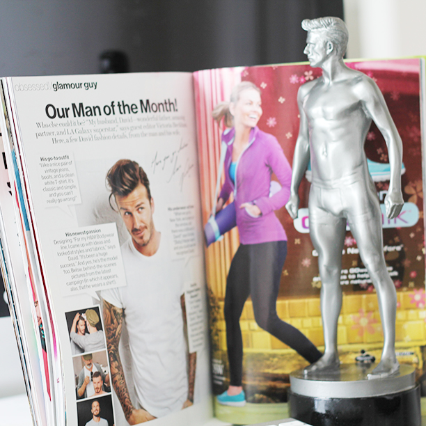 So, we got this statuette of David Beckham yesterday (H&M is promoting the soccer stud's bodywear line), and we've decided he's pretty much the perfect office boyfriend. Think about it: he looks like a Greek god, he won't judge you when you're on your 10th hour stuck staring at your computer screen, and he seems to have a pretty good sense of humor as far as his own press. Strong, silent, supportive. What more could you want? Other than life-size, and maybe, you know, human.