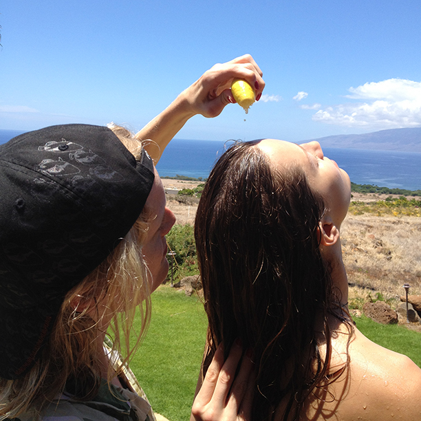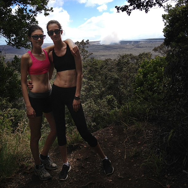 “Hanne squeezed some lemons into my hair in hopes of highlights in Maui [1], and here’s Jacquelyn and I hiking in the volcano park around the Halema’uma’u crater [2].”