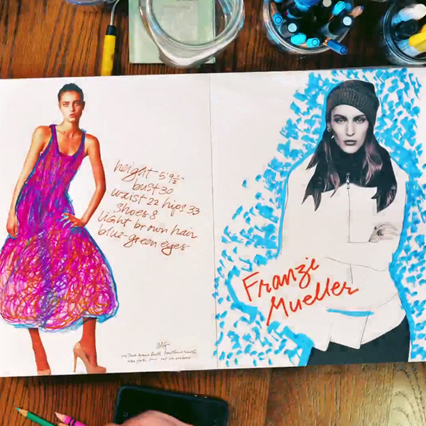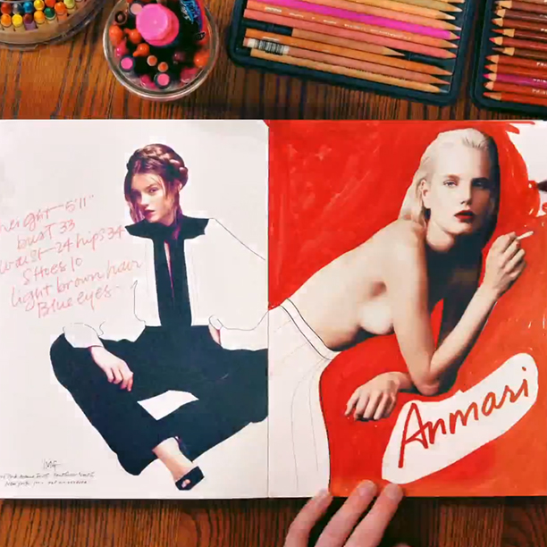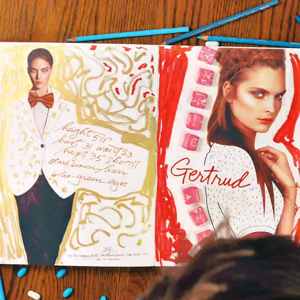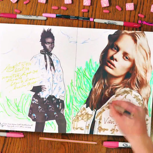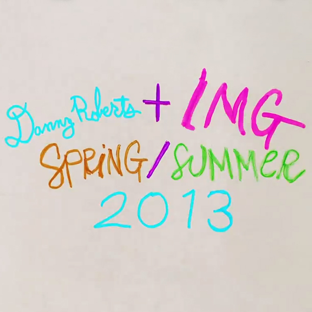 Fresh off his stint as one of the four artists selected by Tiffany’s to transform the construction façade of the brand's yet-to-open SoHo store, Danny Roberts is tinkering again. IMG commissioned the self-described “fashion artist' to “interpret' and liven up their SS2013 show package “coloring book'—which he did using colored pencils, markers, stop-motion video, and his signature aplomb.