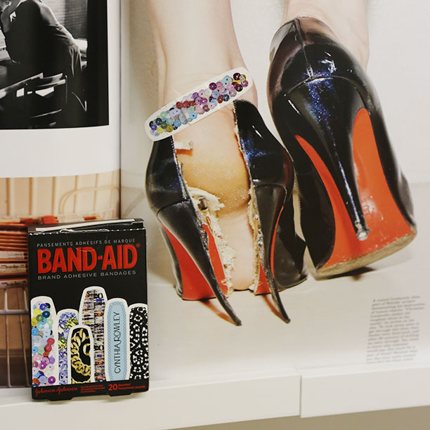 So, it’s only a few days into fashion week and some of us (ahem) may have made the not-so-clever decision to break out some new kicks. Yes, I’m talking about myself again, and yes, I have new battle scars to prove it. There are days and days and days of things to come, and, sure, I could wear flats, but now even my flats hurt, because I have these painful spots from one pair of heels that shall remain nameless (because I still love them and will wear them once they’re broken in, or you know, I am). But I will not go quietly into the night! Band-Aid(s) ** *** to the rescue. But which kind? The drugstore next to The Gloffice (aka ITG HQ) was overrun with options: medicated or unmedicated? Clear or classic? Cynthia Rowley prints?! So I decided to try a few and reveal the results in the likely event you should ever befall the same fate (and if you never do, TELL ME YOUR SECRETS).