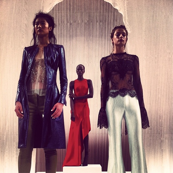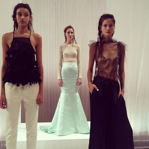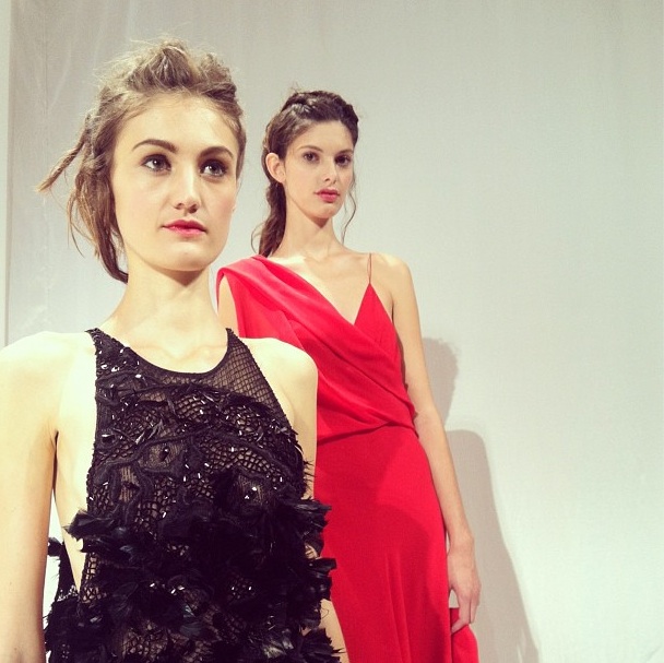 I loved Wes Gordon’s spring presentation, and not just because he’s a beloved friend (and roommate of several years). For spring, Wes paired his exceptionally luxurious—spring-weight cashmere, hand-pieced lace, and Swarovski- and feather-embroidered—looks with a smudged rose lip and some notably un-fussy hair. It seems he's taken note of my habit of never using a brush, ever (not even when the invite says “black-tie')... but he's made rocking bedhead look seriously chic.