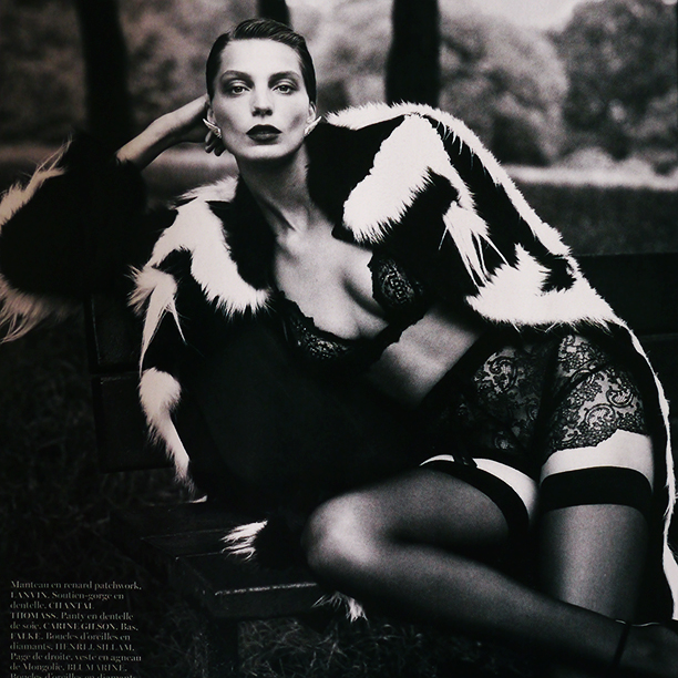 We’ve been talking a fair amount about the dark, gothic lip for fall (heck, we even slapped one on Annabelle when she came by), but nobody sells it quite like Daria. Girl is rocking a deep plummy pout (the mag tells us it's Lancôme’s L’absolu Rouge Creme de Mat Lipcolor in Midnight Rose though we suspect some layering was involved. Tom Ford's Black Orchid, maybe?) in a Mert Alas and Marcus Piggott shoot in September Vogue Paris (styled by Emmanuelle Alt). Those furs, those diamonds, that Daria! Color us obsessed. Or, I guess, ' obsédés?'