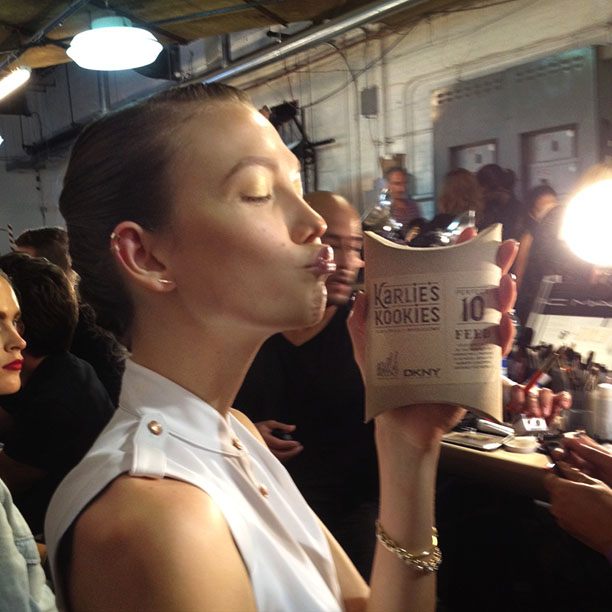 And I'm here to tell you that they're incredible. I just housed the melted sample that Kloss slipped Emily backstage at Jason Wu, and we're talking, like, the best gluten-free, dairy-free, agave-sweetened cookie I've ever had. (I did the gluten-free thing for over a year and have eaten my weight in this kind of stuff.) You wouldn't think a model would have it in her to make a tasty treat, and you, like me, would be wrong. It's a soft, chewy mix of mini chocolate chips and gluten-free oats, with slivers of roasted almonds, making for a nice crunch/chew pattern. But I'm not just bragging about eating an awesome cookie that no one else can get their paws on—it seems like Kloss is trying to spin this into a business. She told us that, along with shooting the new MTV “House of Style' with fellow IMG-er Joan Smalls, she's developing Kookies as a “pet project,” (Some of the proceeds are going to FEED.) At the moment, she's on the hunt for willing retailers—the dream is Whole Foods. (Any readers have an in?) “I'm taking down the Keebler elves,” she promised. “I'm taking 'em down,” Elves, she's a lot taller than you, and her cookies are the bomb, so consider yourselves warned.