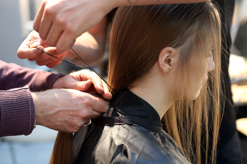 This is quite an interesting and inspiring collection—inspiring in the sense that it’s very quiet and there are these incredible details. It’s so normal [that] it’s fantastical—if that makes any sense. Everything’s based on the idea of a capsule collection of what a woman would have in her wardrobe: a tennis skirt, a polo shirt, a jacket, a pair of trousers, a skirt, a dress. It’s very basic in that sense, but the volumes and the ways the pieces have been twisted in this subtle way—the rose prints are really sumptuous, but they’ve been done digitally and they’re kind of blurred. Everything’s off, and that’s really what I wanted to do with the hair. Because there were these huge satin scarves that almost look like cloches, with huge silk flowers, there wasn’t a huge area I had to work with. So, I decided to make it all about texture and quality of hair and lines. I looked at the clothes and I thought it would be amazing if there was hair coming down the back—a kind of sensual, romantic veil of hair that almost floats. Then I thought, ‘Wouldn’t it be nice if I put the hair in a ponytail?’ And I went, ‘Nah, it wouldn’t be nice, it would be bloody boring.’ So what we’ve done is straightened the hair so that it’s so shiny, it almost looks synthetic, and we put it in a very low ponytail and literally pulled the hair apart, so there are curtains of hair that disappear up, and then some straight pieces of hair in front. You’re not really looking for something specific when you see the girls’ hair, it’s sensory— you look at it and you feel something, because you’re looking at textures that are so perfect, they’re almost unreal. There’s no products, either—that’s what’s so great about it. We just used a flat iron and some Wella Ocean Spritz in the front to create that texture.