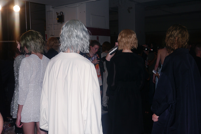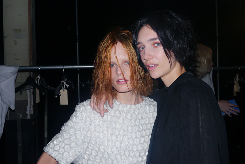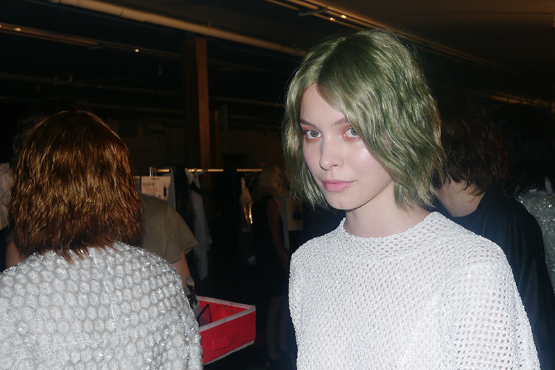 It wasn’t so very long ago that we brought you Olivier’s new ‘do and the scoop on the t-shirts that followed, so imagine our figurative grab-bag of happy emotions (note: it was suggested this post be written solely in emoticons/emojis, an idea that was entertained for probably longer than is healthy) when we saw the girls at the Theyskens' Theory show marching down the runway with choppy crops matching Olivier’s in a grungy rainbow of shades. Those colors! That sexy ‘slept-in,’ who-cares styling! The scoop? Odile Gilbert cut and colored each of the 40 wigs four days before the show, and the designer doled them out during fittings with an eye to each model’s complexion, eye color, and runway look. Let’s not forget Gilbert’s infamous line way back in February 2011: “[Olivier] has very strong opinions about how the girls should look…he’d like for them to look like him.” It would appear that’s still the case.