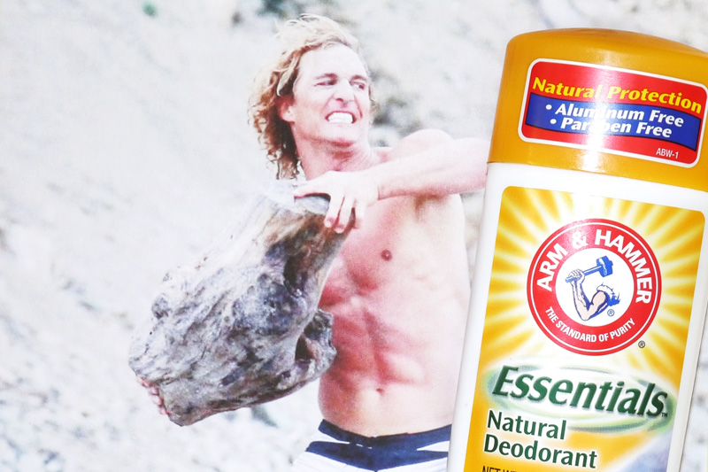 Nick : People put that on their hands! There’s a deodorant I found a couple years ago... it's called Arm & Hammer Essentials. It’s a clear stick, solid, and it doesn’t have a scent. No aluminum, no parabens. It works perfectly for me and it doesn’t stain anything and I never smell! Except for this one time on an airplane…