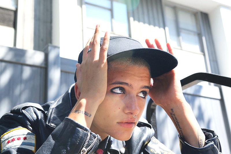 I think my hair makes people react differently to me. But part of that is my crazy style, too—people are never too sure if I’m a guy or a girl. I always kind of got this, because of my style, but people are always like, ‘Sir—I mean, ma’am! I mean…’ They don’t know what to do with me…they don’t know what kind of box to put me in. But, I kind of like that. I’m a little bit of a mindfuck when people look at me. Everyone’s like, ‘Who’s that little boy?’ I just laugh; I just think it’s an interesting social experiment, when people question me. But it’s a good conversation to have, so I’m happy that it’s out there…that people are thinking about it. It’s cool. But I guess now it’s a thing to be androgynous. That thing on Style.com! I was dying. [Laughs] I was like, ‘What do you mean, lesbian chic?! This is the weirdest thing I’ve ever heard in my life!’ It made me feel really uncomfortable. But fashion can be really insensitive to things like that.
