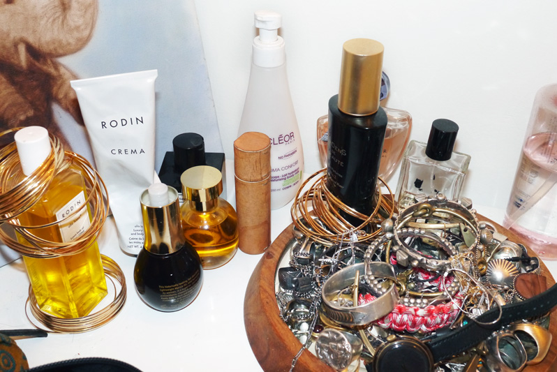 Everything really needs to be paraben-free for me. I mean, because if I’m going to smoke cigarettes, then I need to be aware of all the other bullshit I’m putting into my body. For my skin, these are the jam: Julisis Silver Wash Night and Gold Wash Day. I got it all from Terri; she found some crazy dude who makes all of these things. It’s all based on different rocks and stones that have been blessed by shamans. And oils, I’m an oil aficionado—the Julisis face oil is the best, but Rodin cream and the Olio Lusso body oil are great, too. And I'm all about DDF Glycolic 10% Toner. It's a godsend for whenever you’re getting breakouts—you put it on at night, and it tends to just dry everything out. It’s like chemical warfare. But I do feel there’s a bit of a placebo effect with skincare. I think that we look at ourselves too much, and we try too many fucking products that agitate and aggravate our skin, and that’s sort of what’s dooming us. If you’re using something and you think it’s doing something for you, it’s in your head. It’s all genetics, really. At the end of the day, if you’re going to get lines, it’s probably because your mom and your grandma had the same lines in the same place on their face.