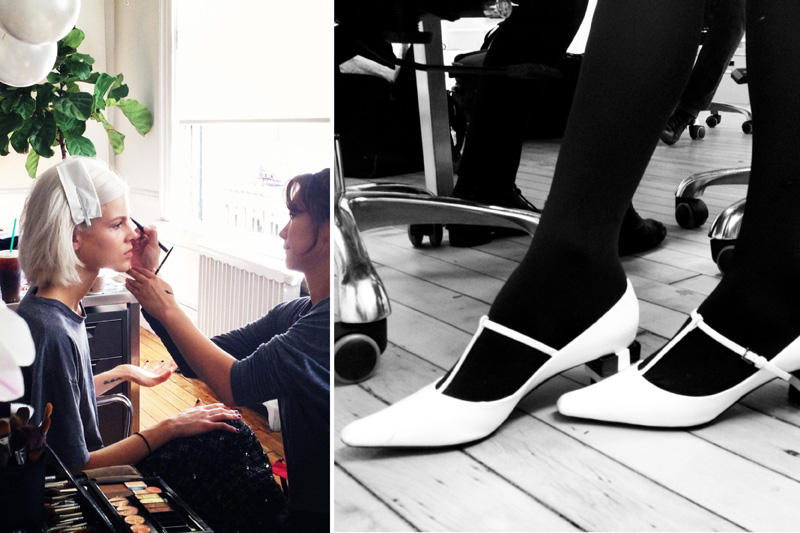 We cast Marc Jacobs SS ’13 opener (and campaign star) Ruby Jean Wilson as our heroine, and she showed up to our makeshift Factory one Saturday with a backpack of vintage goods, and in a pair of totally mod Louis Vuitton SS ’13 white shoes—a gift from Marc and Co. for her long hours of dedication pre-show (she did the “looks” in-house, musing for the designer and stylist). Makeup artist (and Tabitha Simmons fave) Yumi Mori created a series of Edie-worthy but totally modern makeup looks, while newcomer Brian Buenaventura whipped her platinum bob into a series of vintage shapes.
