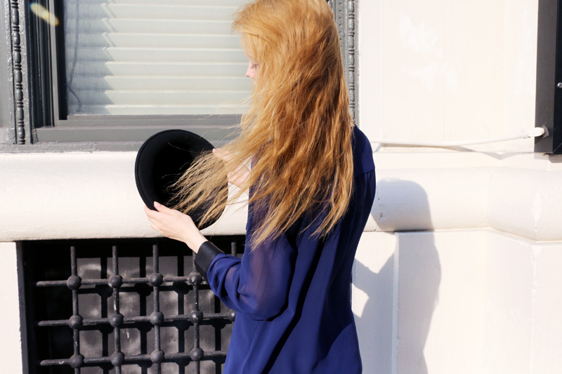 Apryl Mueller photographed by Emily Weiss in New York on September 17th, 2012. Apryl is wearing an Express top and necklace, and vintage hat from Tokyo.