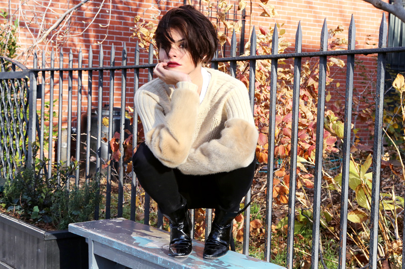 Emily Weiss, wearing a Reed Krakoff sweater, Rag & Bone jeans, and Derek Lam boots, photographed by Elizabeth Brockway in New York on November 28th, 2012.
