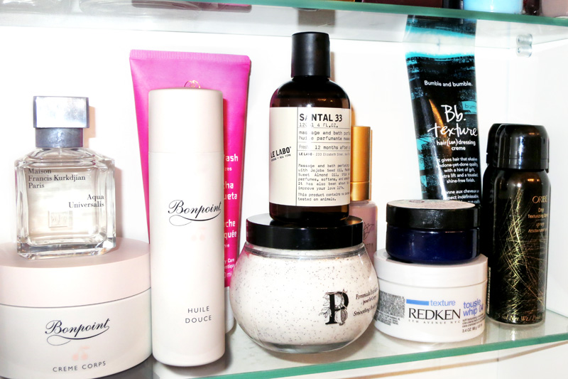 Let’s start with skincare, shall we? And more specifically: the body. Oils are my best friend right now. In fact, if you put me on a Slip n’ Slide between the months of December and February, I’d fly down faster than the Jamaican bobsled team. A certain French designer told me that she uses her daughter’s Bonpoint products—the Crème Corps, and the “massage oil”—so I picked them up and they are amazing. They’re rich without feeling greasy (after all, you can’t have a butterball baby in your arms), and smell incredible and not too perfumey. I mix in a squeeze of Le Labo’s new Santal 33 Massage Oil, especially on elbows and pulse points, in lieu of perfume on most days. On the other days, I’m reaching for Maison Francis Kurkdjian’s Aqua Universalis Forte, a laundry-fresh eau. I’m also really enjoying Diptyque’s Smoothing Body Polish—the apothecary-esque packaging, and the oddly pleasing, putty-like texture. It gets your ready for the onslaught of oil (tip: proper oil application—body or face—takes a little bit of hustle. Skin should still be damp from the shower so as to encourage absorption and to avoid over-doing it). Weleda’s creamy (but non-lathering) Wild Rose Body Wash is perfect for everywhere else.