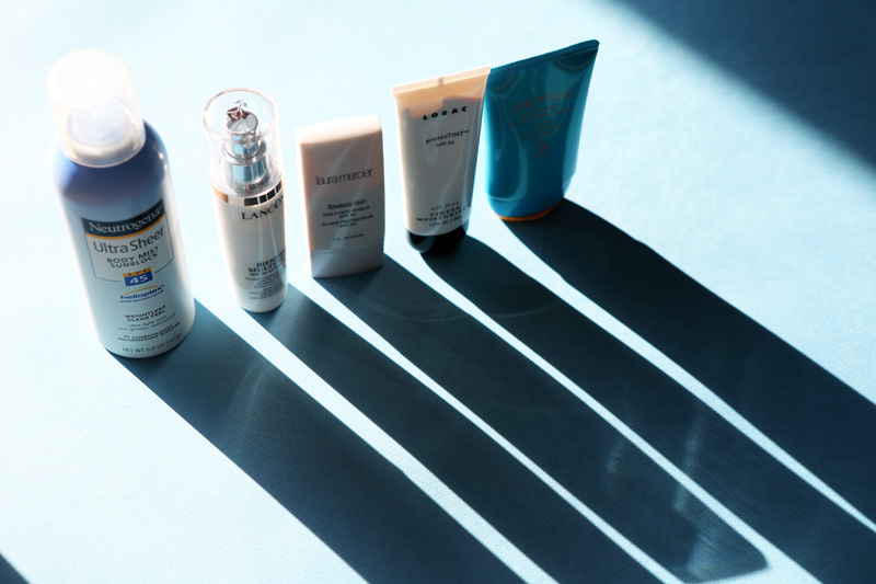 Overall winner** , especially if you’re lazy/ busy/not into lotions, not even a little bit: **** Neutrogena Ultra Sheer Body Mist** in SPF 45 is weightless and has that cool, 'clean feel' that is so light you think it couldn't possibly be working. It is—it's recommended for outdoor sports, but we like to think of our lives as a sport. You know? Walking is a sport. Reading on a beach towel can be a sport. Be more athletic.