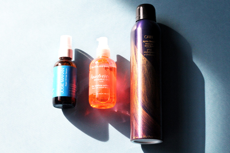 Hair : Josie Maran Argan Oil Hair Serum is ideal for tresses that stress out at the beach/humid climes. Bumble and Bumble Hairdresser's Invisible Oil is a Gloffice favorite and jam-packed with beach-ready UV filters to protect your head. And, it smells like vacation. Kérastase Huile Celeste protects, ups glimmer, and, notably, detangles (a cause that you know is dear to our hearts). Oribe Apres Beach Wave and Shine Spray can be your spray-and-go styling tool at night, wherever/wherever, if insouciant waves are what you're after. (Aren't we all, always?)