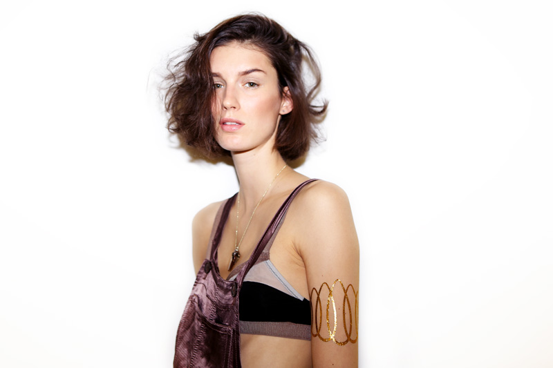 Aside from an ephemeral skin cuff positioned around her bicep and a link bracelet on her wrist, Marte Mei Van Haaster needed little in the way of gilding for our shoot. The radiant Dutch model (wearing her own low-slung Marc Jacobs satin overalls and VPL bra) looks straight out of an Old Masters painting, save her now-signature shaggy bob, which, she told us, wasn't a strategic decision so much as a necessity. (Before she burst onto the scene in Marc Jacobs' fall 2012 campaign, she was a textiles student, and her long waves were getting caught in the weaving machines. Yikes.) All Emily added were some strategic highlights (Giorgio Armani Fluid Sheer in Shimmering Beige), a little bronzer for depth (Laura Mercier Sheer Crème Color), and a glossy Eight Hour Cream lip. And then she was (temporarily) golden.