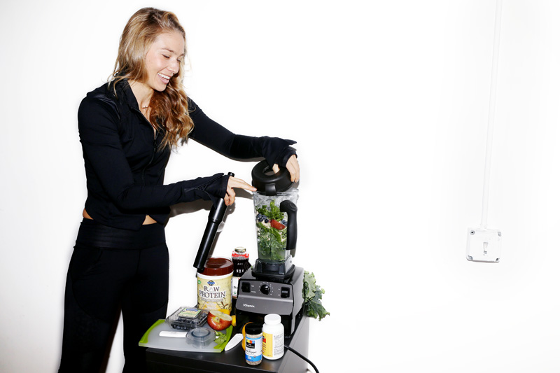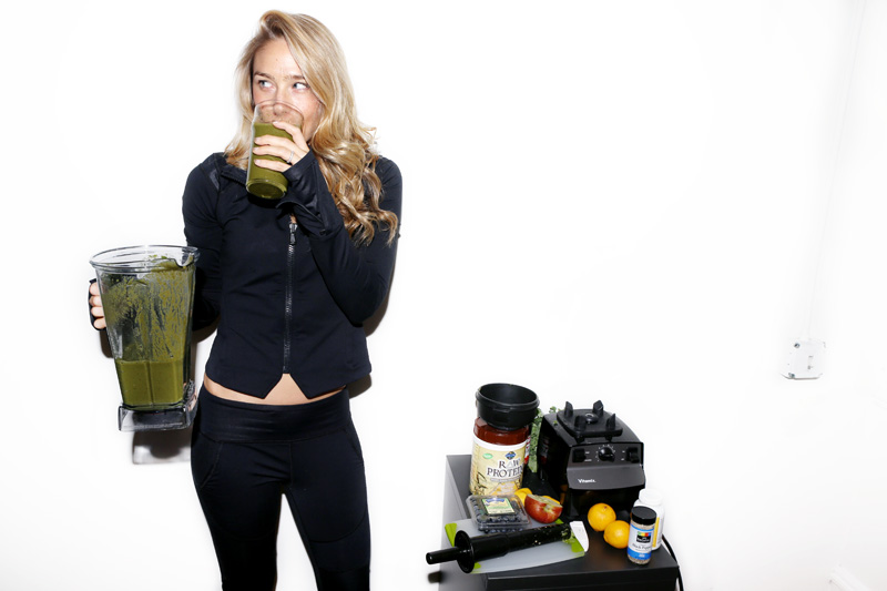 Look, we're in no way 'holier than thou' when it comes to nutrition. We pretty much subsist on Starbucks breakfast sandwiches and Family Size bags of peanut M&Ms from the Duane Reade across the street. Who has time to think about their folic acid intake? We live on the internet, for Pete's sake; if it can go into our mouths easily, quickly, and give us some modicum of energy, well, that's something. But the results aren't great: sluggish, hungry at random hours, this overcoming sense of rotting alive in our desk chairs—you know, office-life stuff. And, we hear, a peppy, fog-free (no-junk-food-cravings) day starts with what you start with: breakfast. Who better to advise on energy-packed morning meals than a woman who expends energy for a living? So, we hollered at one of the fittest girls we know, Natalie Uhling, 28-year-old workout whiz, lovely face of [Under Armour Women](http://www.youtube.com/watch?feature=player_embedded&v=DDXhHLmq5lc#!” target=), beloved group instructor at 24 Hour Fitness and Pilates-on-crack studio SLT, and all around buff babe (she burns approximately “a thousand calories an hour!” she estimates, while teaching her Turbo Kickboxing classes) to find out how she starts her day. “Fitness is my job, I take it seriously. Big time,” she says. Don’t believe her? Check out that body and that blender. That’d be a Vitamix. “If you don't have a Vitamix, I suggest you do!” Natalie said, as she dropped kale into her behemoth blending machine. “It'll blend your hand off...it's crazy!”